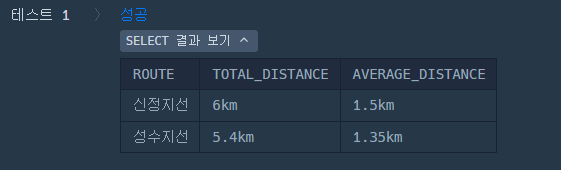 - 총 누계 거리 컬럼명: TOTAL_DISTANCE, 평균 역 사이 거리: AVERAGE_DISTANCE