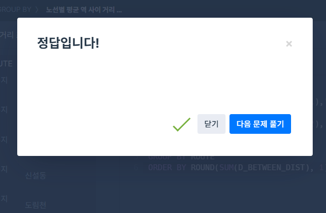 3. 평균 역 사이 거리 = AVG 소수 셋째자리에서 반올림하고, km 붙이기
