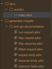 - test -> snippet 생성 -> asciidoctor -> HTML 생성