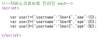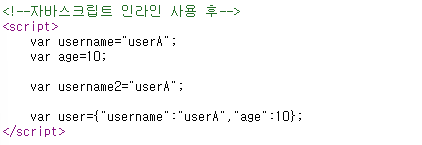 - 인라인 사용 후 -> var user = {"username":"userA", "age":10};