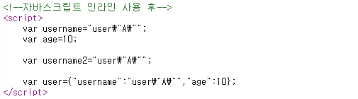 - 인라인 사용 후 -> var username = "userA";