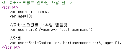 - 인라인 사용 전 -> var username2 = /*userA*/ "test username";