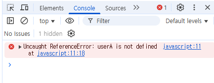 - 결과적으로, userA가 변수명으로 상요되어서 자바스크립트 오류가 발생